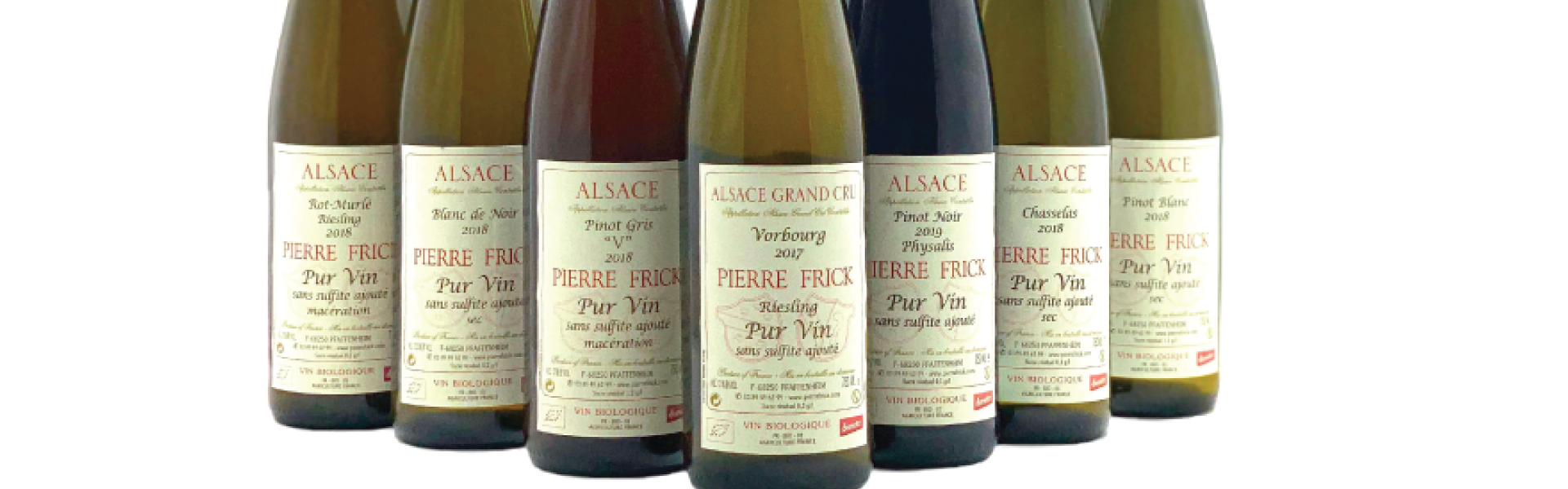 Uno de los pioneros del vino natural en Francia, la influencia de Pierre Frick se observa en muchos. Curiosamente, Pierre Frick ahora utiliza tapones de botella para sellar sus vinos en lugar de corchos para reducir las pérdidas por vinos con corcho. Las parcelas populares de Pierre Frick incluyen sus viñedos Vorburg, Strangenburg y Rot Murle.